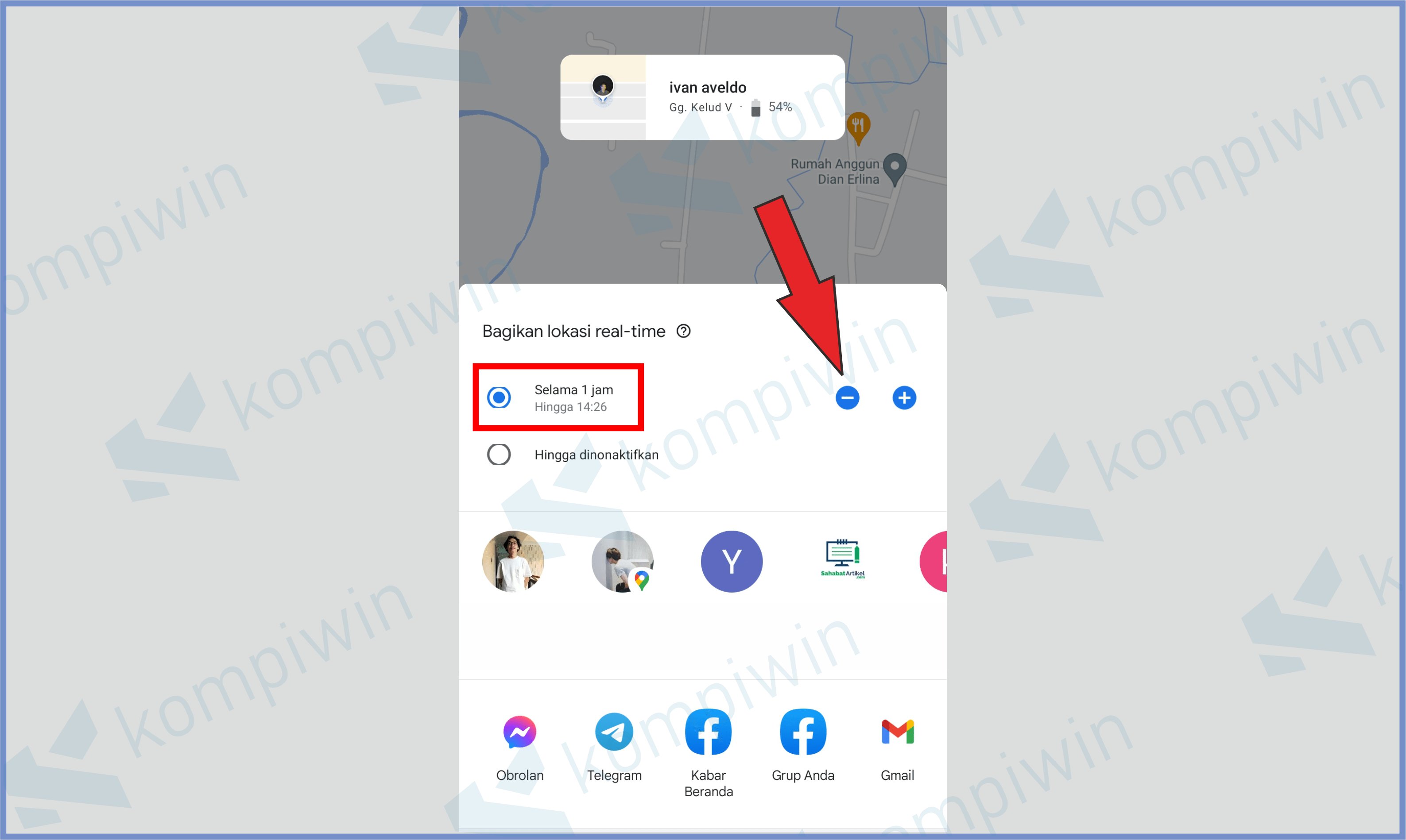 - Atur terlebih dahulu pengaturan real timenya. Pertama kalian disediakan interval waktu berbagi lokasi real time dalam hitungan menit hingga jam, atur saja dengan menekan tombol plus atau minus.