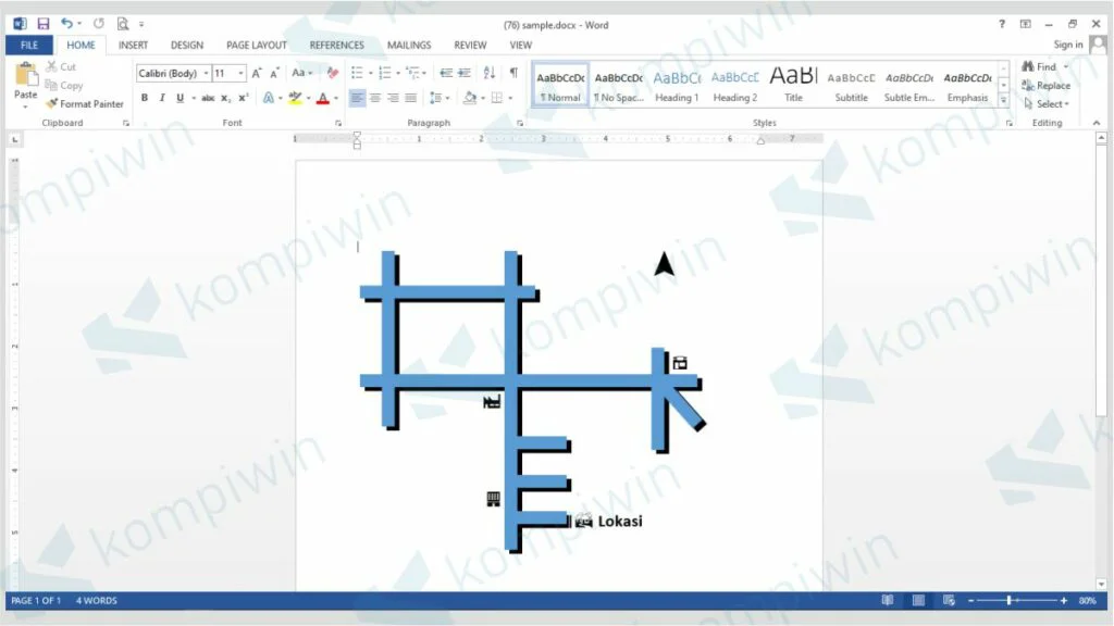 Jadi fitur yang perlu digunakan dalam membuat denah lokasi ini adalah fitur Shape, kalau kamu sudah sering membuat shape di Word pasti akan lebih terbiasa menggunakannya.