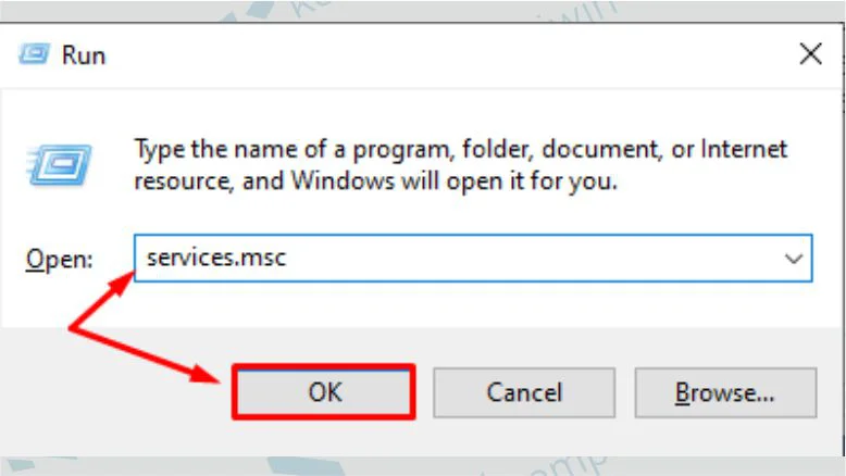 - Silahkan ketik di kolom pencarian services.msc kemudian pencet OK.