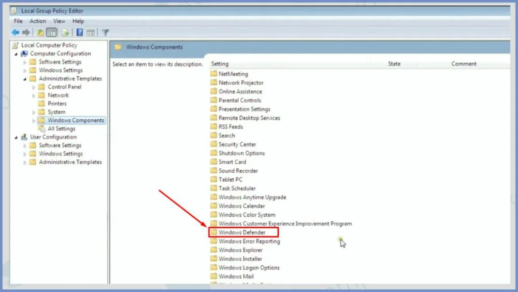 - Silahkan masuk ke format alamat Computer Configuration ➤ Administrative Templates ➤ Windows Components.
