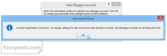 Itu artinya, Anda telah berhasil mendaftarkan blog Anda ke Microsoft Word.