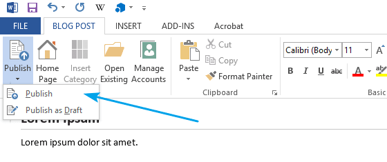 Karena itu, ada cara lain untuk menulis dan menerbitkan postingan blog, yaitu dengan melakukannya melalui Microsoft Word. Microsoft Word memiliki fitur untuk berbagi dokumen ke blog Anda. Melalui cara ini, Anda dapat menyesuaikan font dan ukurannya, menggunakan proofing bahasa Indonesia, atau menyesuaikan tampilan lainnya. Sehingga, ini akan membuat Anda lebih nyaman dalam menulis dan menerbitkan postingan blog.